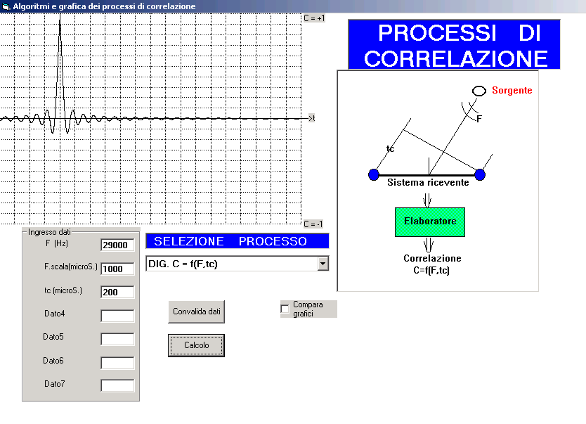7) Clicchiamo su: DIG. C = f(F1,F2,tc,s/n,rc); funzione di corr. digitale in banda F1-F2 (in ascissa il tempo )