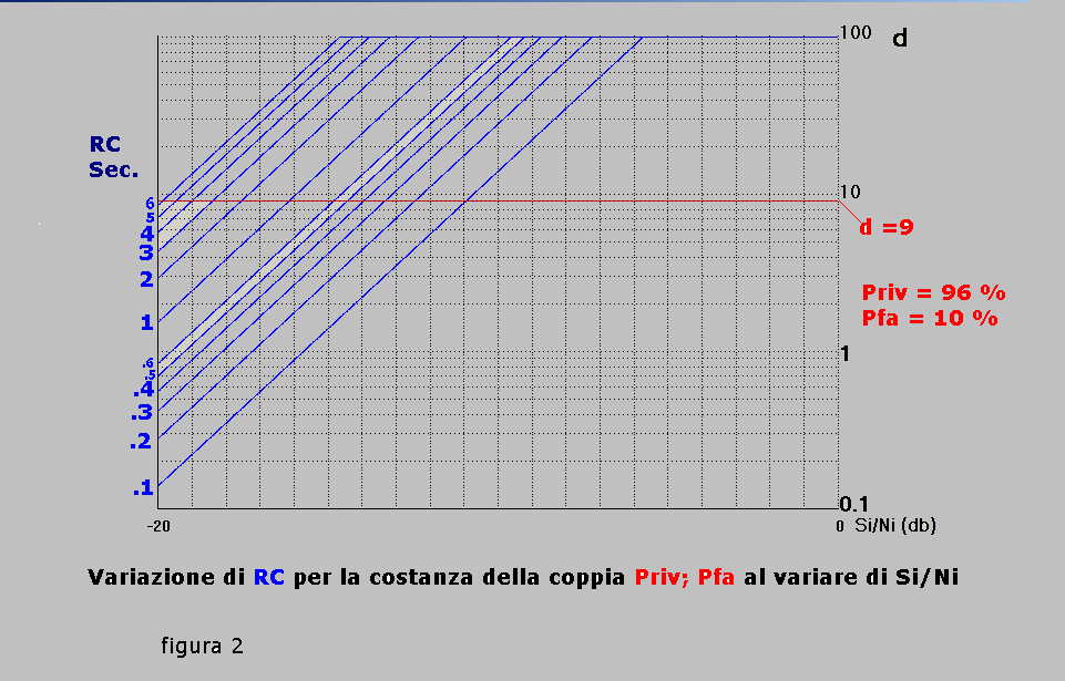 relative alla funzione d = f (Si/Ni) con parametro RC variabile secondo la tabella: