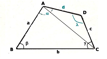Nella figura 1 è tracciato un quadrilatero distinto dai cinque elementi: i lati: "a"; "b"; "c"; e gli angoli