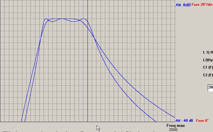 5) label indicatori dei valori calcolati dei componenti il filtro: L in Hy e C in Farad