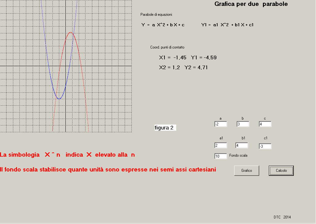 pulsante "grafico" sul reticolo cartesiano compaiono le due parabole.