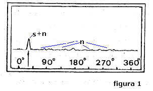 di scoperta diviso in gradi centesimali e le ordinate rappresentano l'ampiezza dei segnali e dei disturbi
