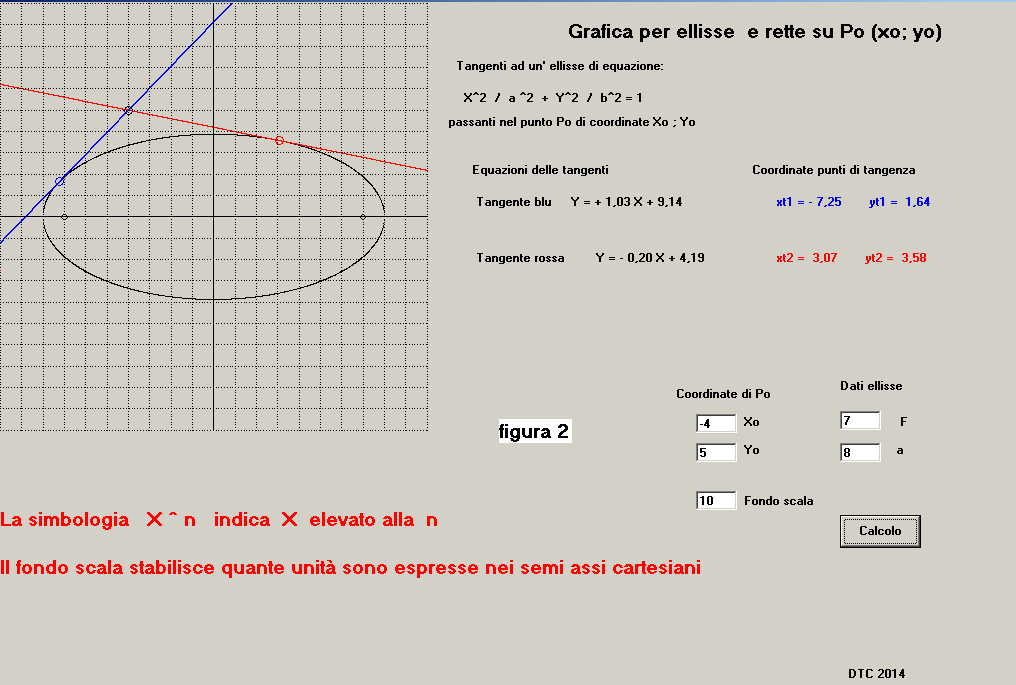 Il programma scrive inoltre l'equazioni delle due rette tangenti e visualizza le coordinate dei punti di tangenza.